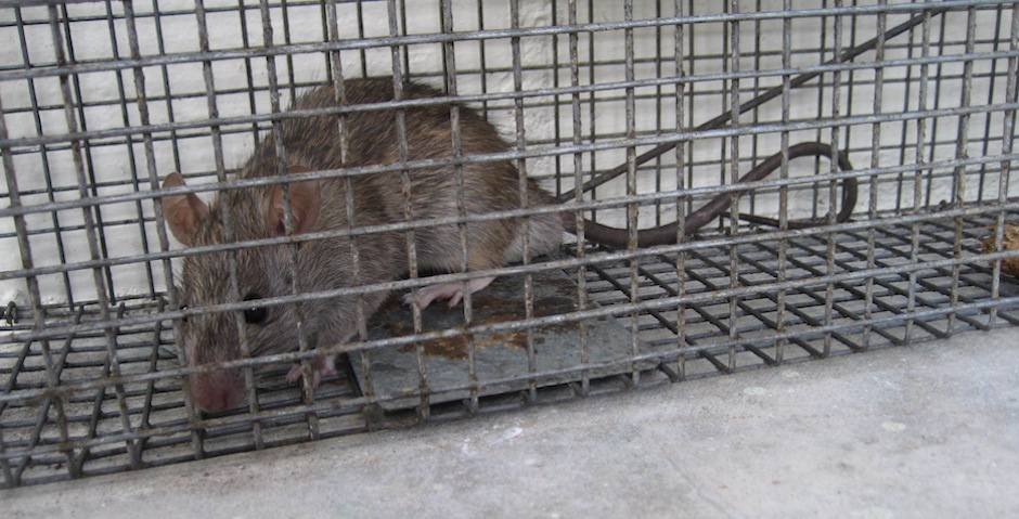 Edibles around a rat might create the wrong impression of a utopia. Pets food, crumb and even cardboard can prove food for these creatures. Seal all foods in containers. Do not use plastic bags, they will easily eat through it. Clean off crumbs off the grounds, around cabinets and any other location. This sets in a natural process of competition where a large population of rats will have to feed on little or nothing. In the absence of food, rats will either from competition or their ever growing teeth.